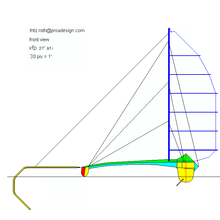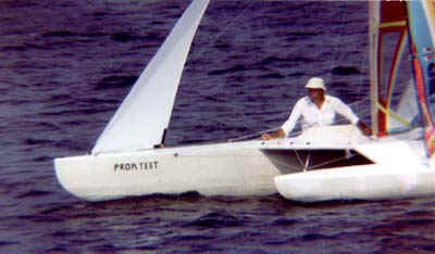 irgendwie schockiert es mich immer wieder - daß leute garnicht an einer lösung interessiert sind - sondern lieber alt hergebrachtes mitsamt seinen nachteilen übernehmen ( gefahren ) --- siehe proa entwicklung --- ein dickschiff kann ja bekanntlich über seinen eigenen kiel nach lee durchkentern - wenn von einer großen welle erfaßt und dabei ganz schnell sinken ( einhand um die welt regatta 96 ) - ein katamaran tut das gleiche des öfteren - auch über bug stolperungen sind bekannt und auseinanderfallungen bei denen ohne haus - ein trimaran ist extrem kritisch - wie das letzte eurostar beweißt - weil bei kränkung auch noch die ganze fläche von luv ausleger und dann großrumpf dazu kommt - weil durch den großen windwiderstand - gewicht der mast höher ist wie das boot lang ( vorallem sollte bei maximal fahrt die last auf dem hauptrumpf liegen ) dagegen habe ich bei meiner proa all das nicht - weil es keine verbesserte nachahmung ist - sondern ganz neu konzipiert - sie ist selbst nivilierent und hat weil sie nur die hälfte wiegt einen mast kleiner als das boot lang - keine stolperung möglich ( 12m bei 24m üa )der ausleger fährt immer in luv - wenn er aus dem Wasser kommen will - hält in die gewinckelte floße vom weiteren herauskommen ( assymetrisch - auftrieberzeugent ) -- selbst wenn diese aus dem wasser kommen könnte - wie manche bösen zungen behaupten - und ich habe dies im modell versuch ohne untere floßenhälfte bestädigt - schießt sie durch die drastische lateralverschiebung sofort auf - dann nach der böe fällt der ausleger wieder ins wasser und weiter geht`s - es gibt also 2 unabängige systeme die sie in verbindung mit dem kurzen mast und dem richtigen baumaterial als auftrieb zum sichersten yacht typ überhaupt macht - kein stolpern - kein sinken - kein k....- keine strukturellen problemzonen -kein motor...... ich habe totale kontrolle unter segeln alleine - zb in einen hafenfinger einfahren - dann ohne zu drehen - rückwärts in sekundenschnelle wieder heraus - oder zu einer ankerboje mit vor + rückwärtsgang hindriftent - sicher aufkreuzen - weil ich nie in einem manöver stecken bleibe - ja jederzeit anhalten kann - warten kann - oder eine 10m proa paddeln kann - eine 24m rudern kann ! das alles hat sich jetzt seit 5 jahren bei der 7m / 9,5m proa bestädigt - unter umständen - unter denen keine andere yacht draußen war - zb als die ganze bucht von gibraltar weiß von gischt und man kein dunkles wasser sah - oder als 100m vor uns eine traditionelle proa kenterte - und jetzt hoffe ich innigst - daß in ein paar jahrzehnten diese altweibermärchen aufhören und leute sicher + schnell segelboot fahren wollen - überall - vom strand weg auf den see mit einer trailerbaren 10x4+m - 250/500kg ( hochkant in einem stück ) oder um die welt mit einer 24x12m 4/8ton mit einer familie als crew ........