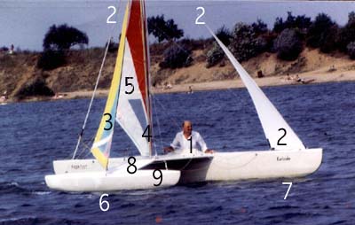 das luvsegel (3) hat etwa die gleiche funktion es begünstigt das abfallen und sollte auch dicht sein das groß mit seiner großen fläche verhindert dann ein zu weites abfallen – selbststeuerung
