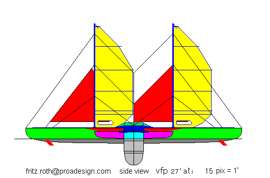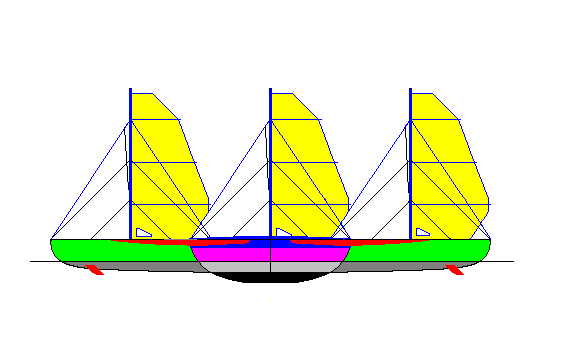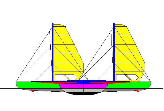 hier eine idee für eine tri proa mit 2 un ab hängigen riggs